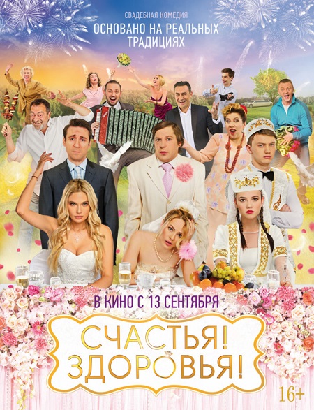 ✦О фильме: » Три влюблённые пары — татарская, армянская и русская — готовятся сыграть свадьбы. Но выясняется, что для Рината и Гузельки свадьба — это способ добыть деньги, чтобы вернуть дорогую скрипку, для отца Артура важнее всего, чтобы свадьба его сына и москвички-Юли прошла в Армении, а у Светы есть «скелет в шкафу» — её «бывший» Андрей в день свадьбы с Олегом вышел из тюрьмы. Зато гости отрываются от души, а у зрителей фильма «Счастья! Здоровья!» есть уникальная возможность побывать сразу на трёх свадьбах. Тосты и конкурсы, песни и танцы, поцелуи и… драки — что за свадьба без драки?! Это бомбически круто и нереально смешно. Три свадьбы, три пары — такие разные, такие непохожие. Но любовь объединяет, а гости от души желают: «Счастья! Здоровья!»