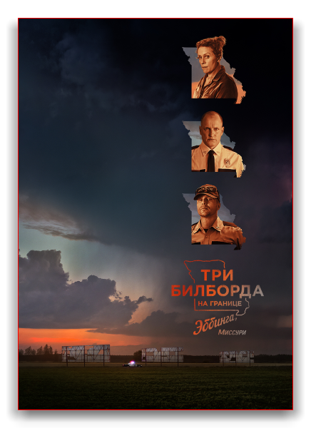✦О фильме: » Спустя несколько месяцев после убийства дочери Милдред Хейс преступники так и не найдены. Отчаявшаяся женщина решается на смелый шаг, арендуя на въезде в город три биллборда с посланием к авторитетному главе полиции Уильяму Уиллоуби. Когда в ситуацию оказывается втянут еще и заместитель шерифа, инфантильный маменькин сынок со склонностью к насилию, офицер Диксон, борьба между Милдред и властями города только усугубляется.